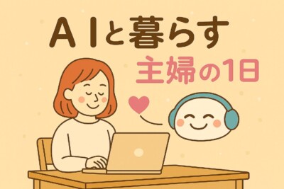 | 11:00 | アイキャッチ画像作成 | 「“AIと暮らす主婦の1日”というテーマで、やさしい色合いのアイキャッチ画像のイメージを考えて」 (画像生成AIには)「主婦がノートPCで作業し、横にAIキャラがいるイラストを描いて」 |