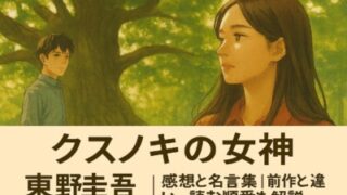 読書感想 東野圭吾『クスノキの女神』感想と名言集|読む順番・前作との違いも解説 東野圭吾『クスノキの女神』のあらすじ・感想・名言を紹介。前作『クスノキの番人』との違いや読む順番も解説し、読後の余韻を深めます。 2025.09.21 読書感想